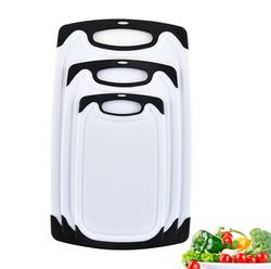 Juego de 3 tablas de cortar de plástico con pies antideslizantes y ranura de jugo de goteo profundo para regalo de promoción